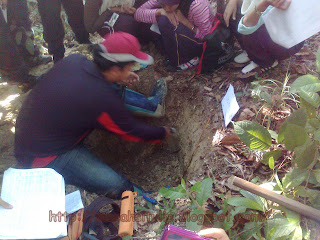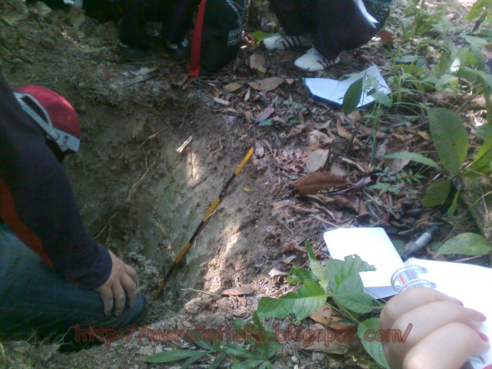 oleh itu, dengan ini aku sharing2 la dengan sesape yang sudi bace blog aku macam mane aku terjatuh cinta pada amali kali pertama ni.....=) ni waktu amali buat soil profiling....