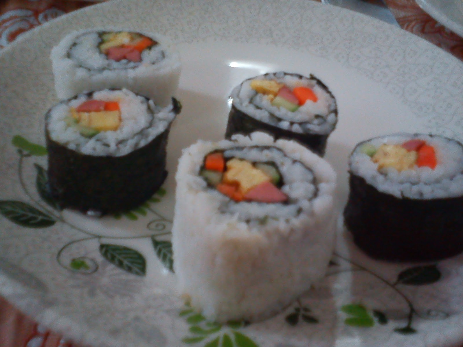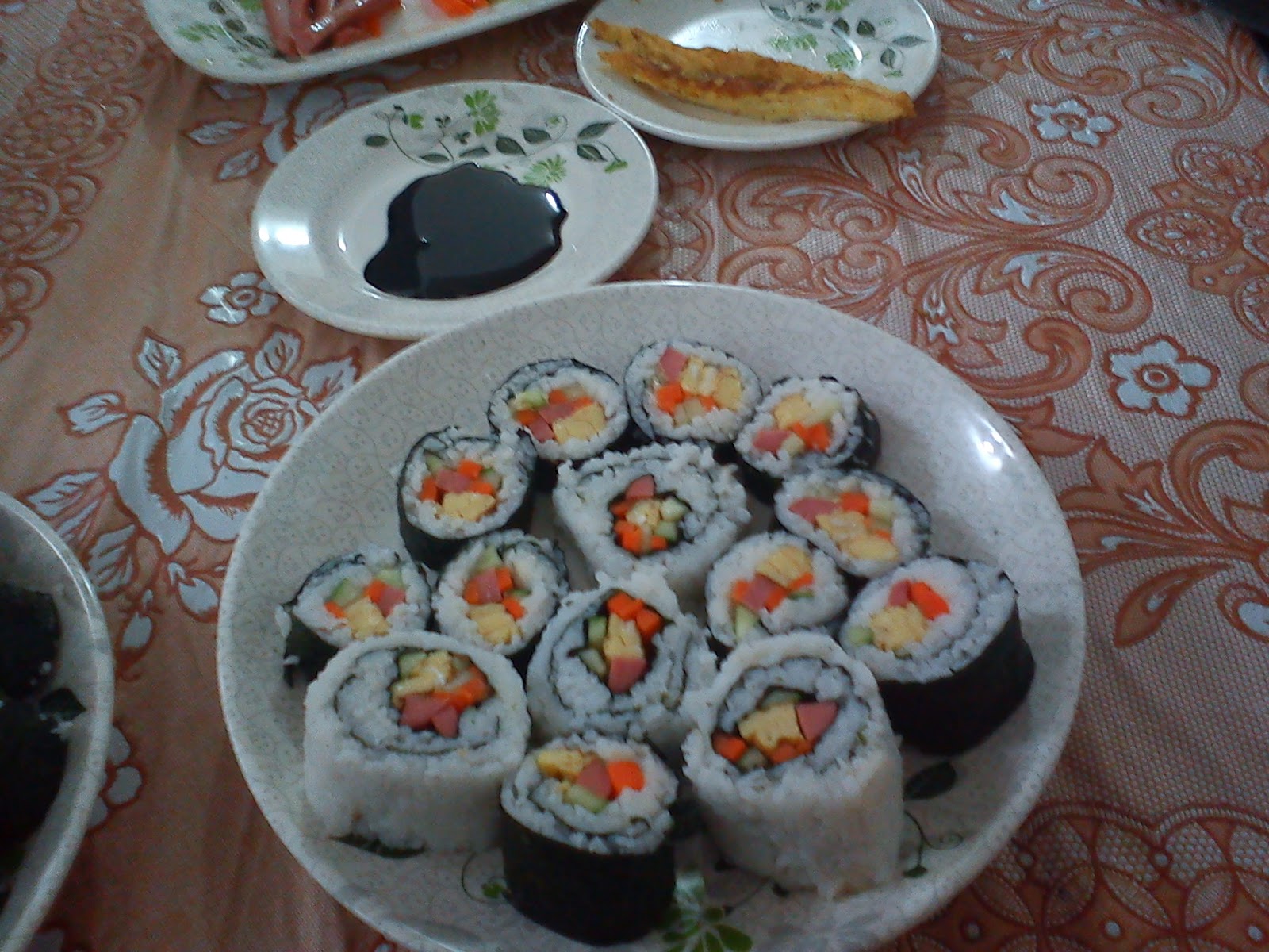 just prepare sushi for our dinner tonight! ofkoz with my dear-dear housemates! (cik mira tukang makan part2 tepi bile potong plus snap pictures je)....