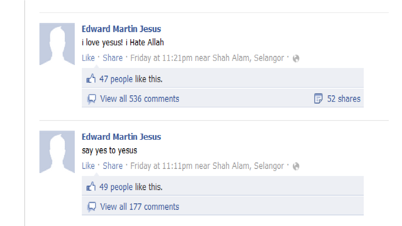 tau takpe...sedih weyh......yg nak bunuh diri tu 1 hal...ni yg gi like plak status mamat ni bile die benci Allah tu.....budak2 islam lak tu..