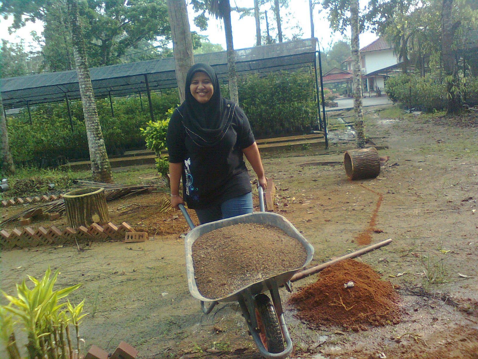 dah buek kojo-kojo dengan anak pokok tu, kitorang diberi task buat landskap pulak......raso cam nak patah pinggang tolak tanah-tanah tu...