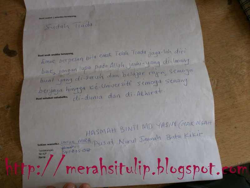 surat ni mak buat masa kitorang gi event utk ibu tunggal dan anak-anak.......dah lama jugak la kewujudan surat ni.....ni masa Cik Mira darjah 5....