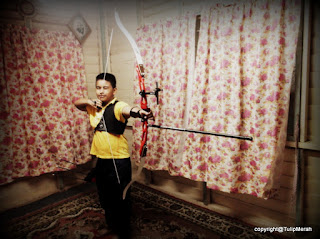 ok, tajuk entry hari ni nak story pasal my niece, Irfan... yang dah semakin bersemangat memanah ye... ofkoz la lepas ayahnye dah beli kelengkapan 'senjato porang' eh tu...